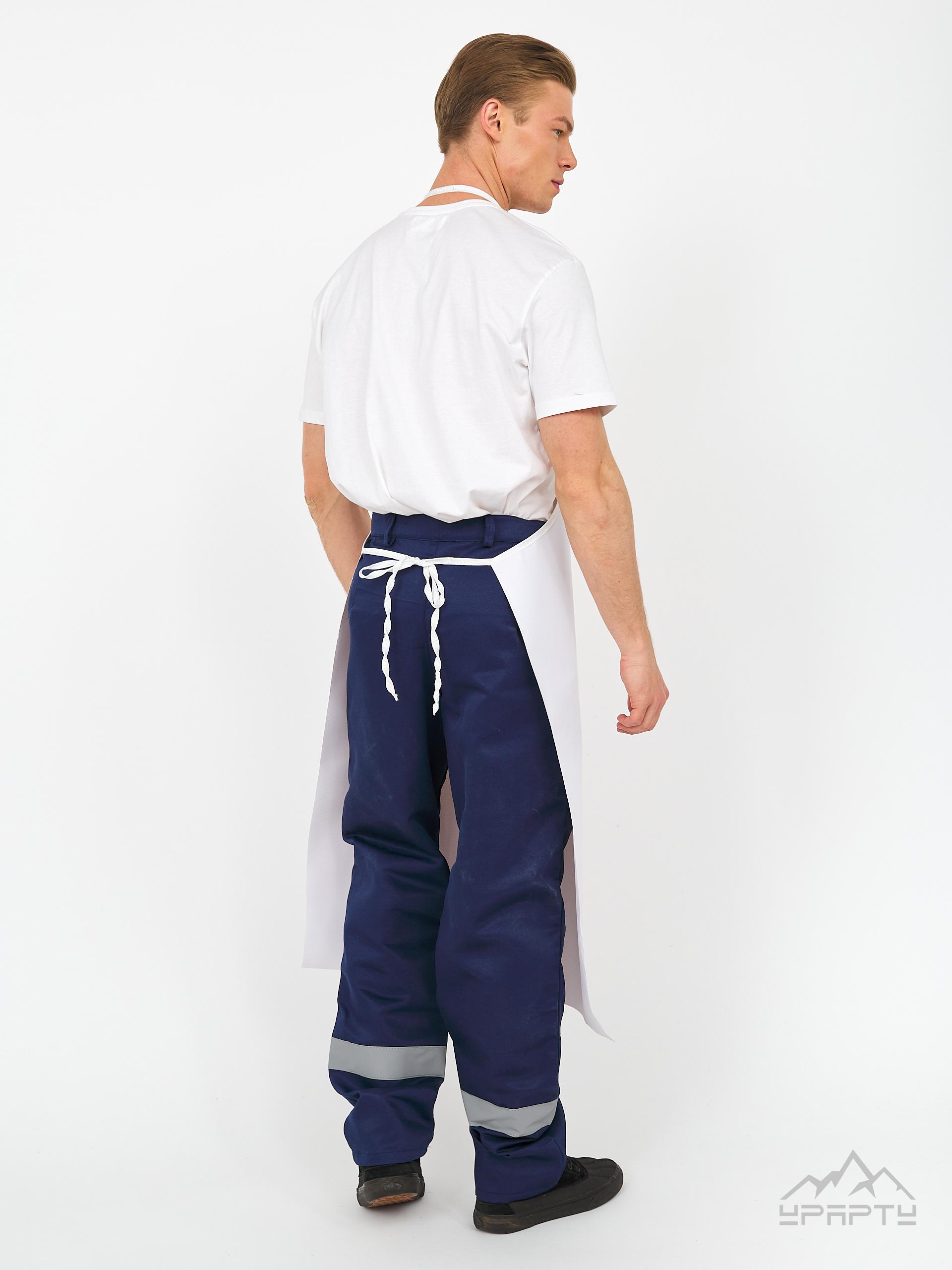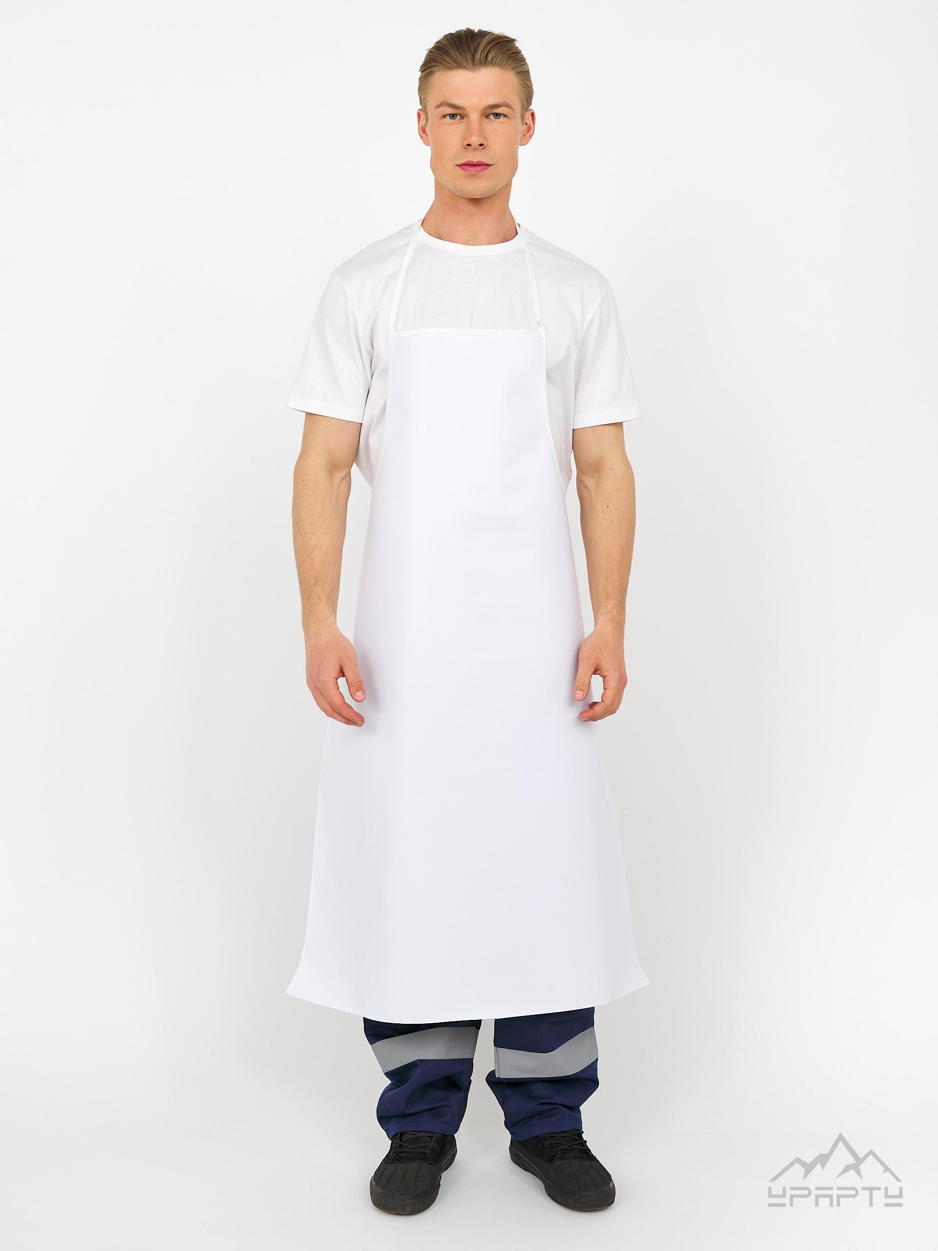 Фартук тип Б с цельнокроенным нагрудником, с замкнутой шейной бретелью из окантовки, переходящей в боковые завязки на линии талии. Рекомендуется для защиты от влаги и нетоксичных веществ.