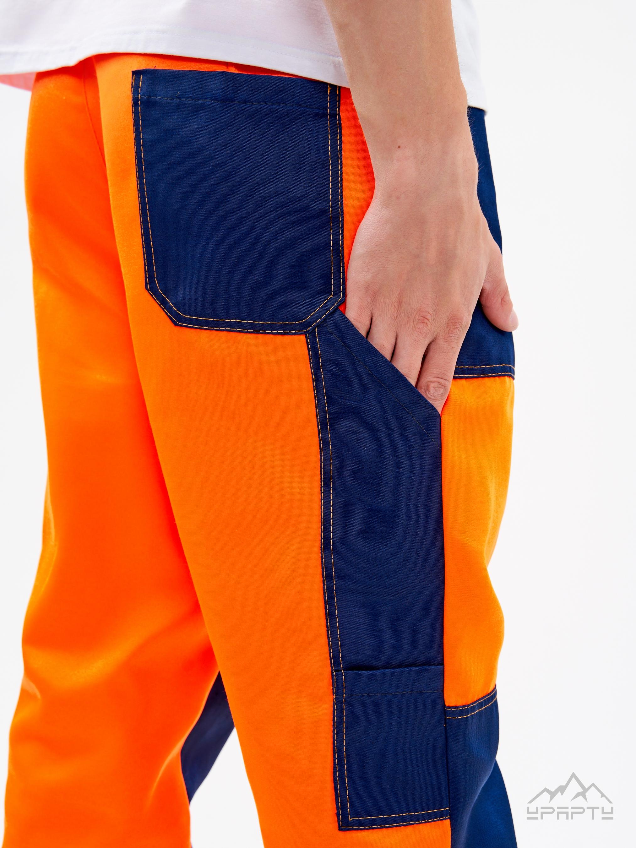 Брюки с застёжкой гульф на петли и пуговицы, с задним и боковым многофункциональными накладными карманами.