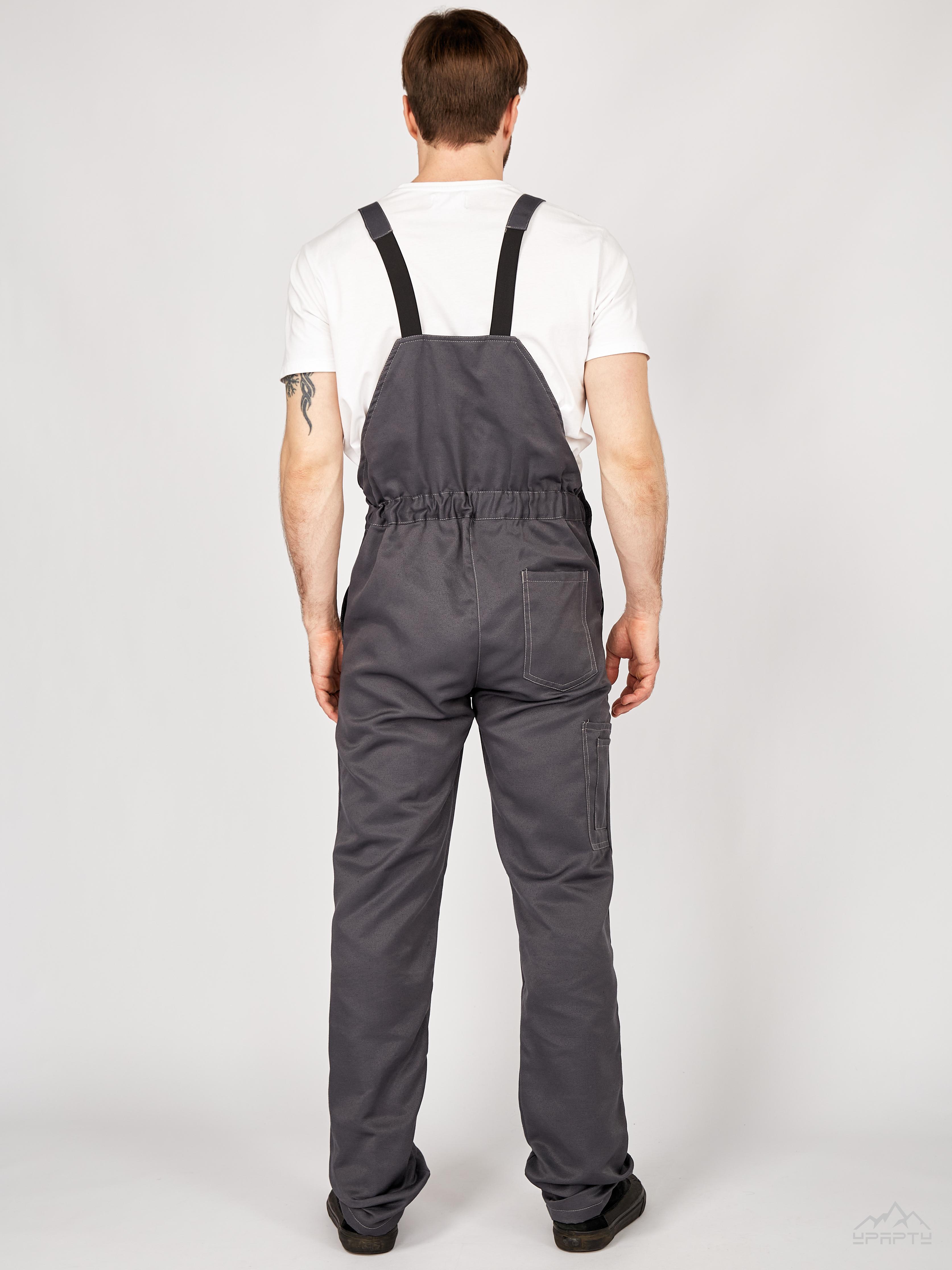Полукомбинезон: прямого силуэта с застёжкой в левом боковом шве на три петли и пуговицу, гульфик на молнии. Бретели на резинках регулируются фастексами.