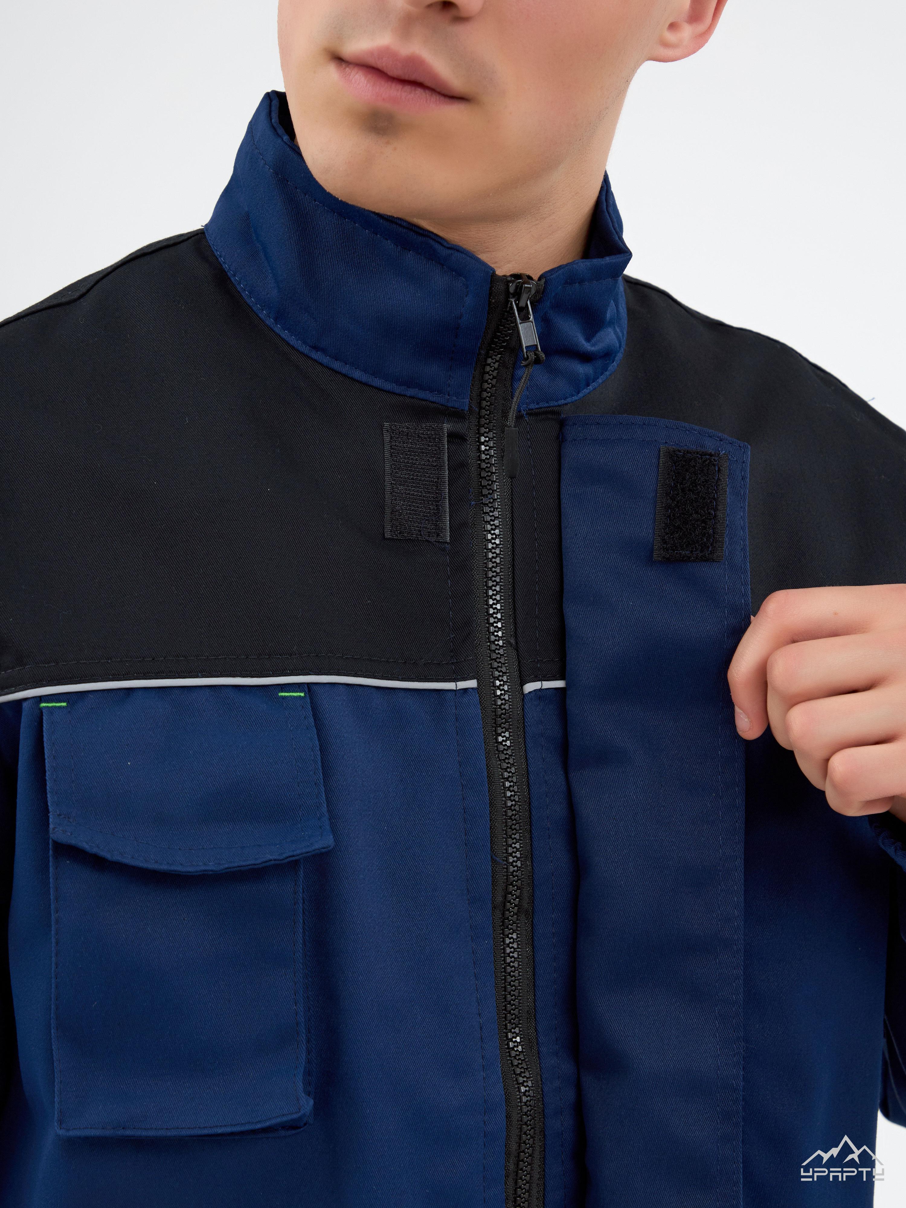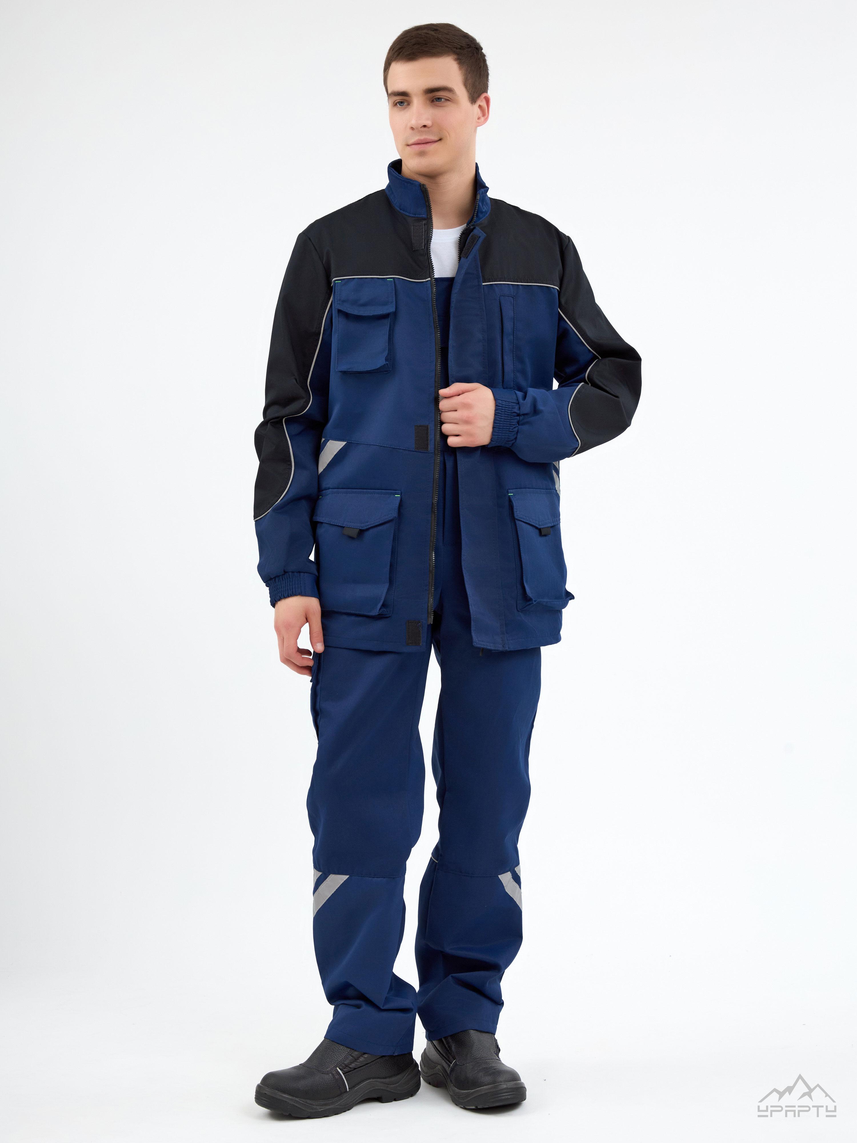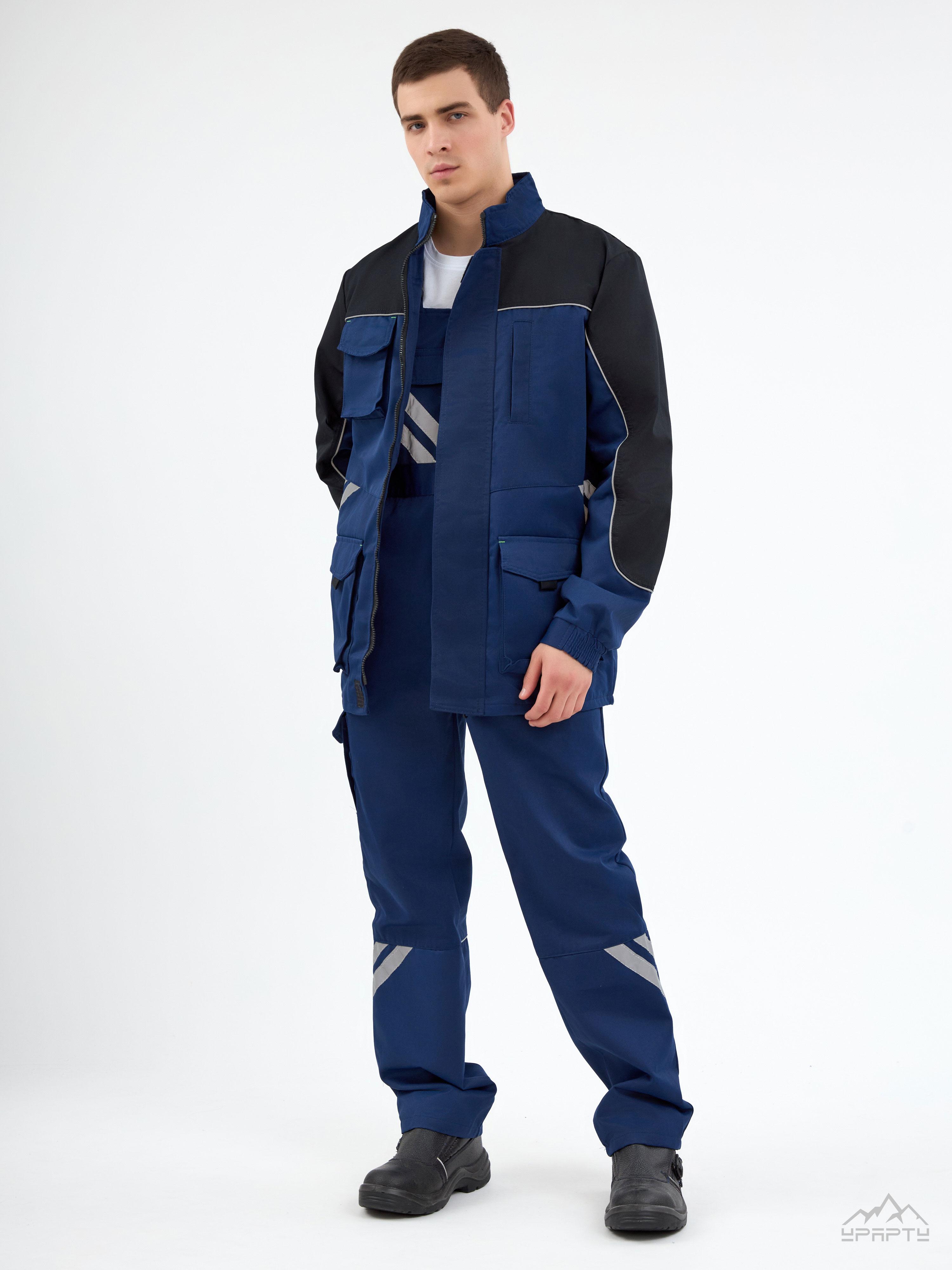 Костюм мужской для защиты от общих производственных загрязнений и механических загрязнений (истирания), состоит из куртки и полукомбинезона.