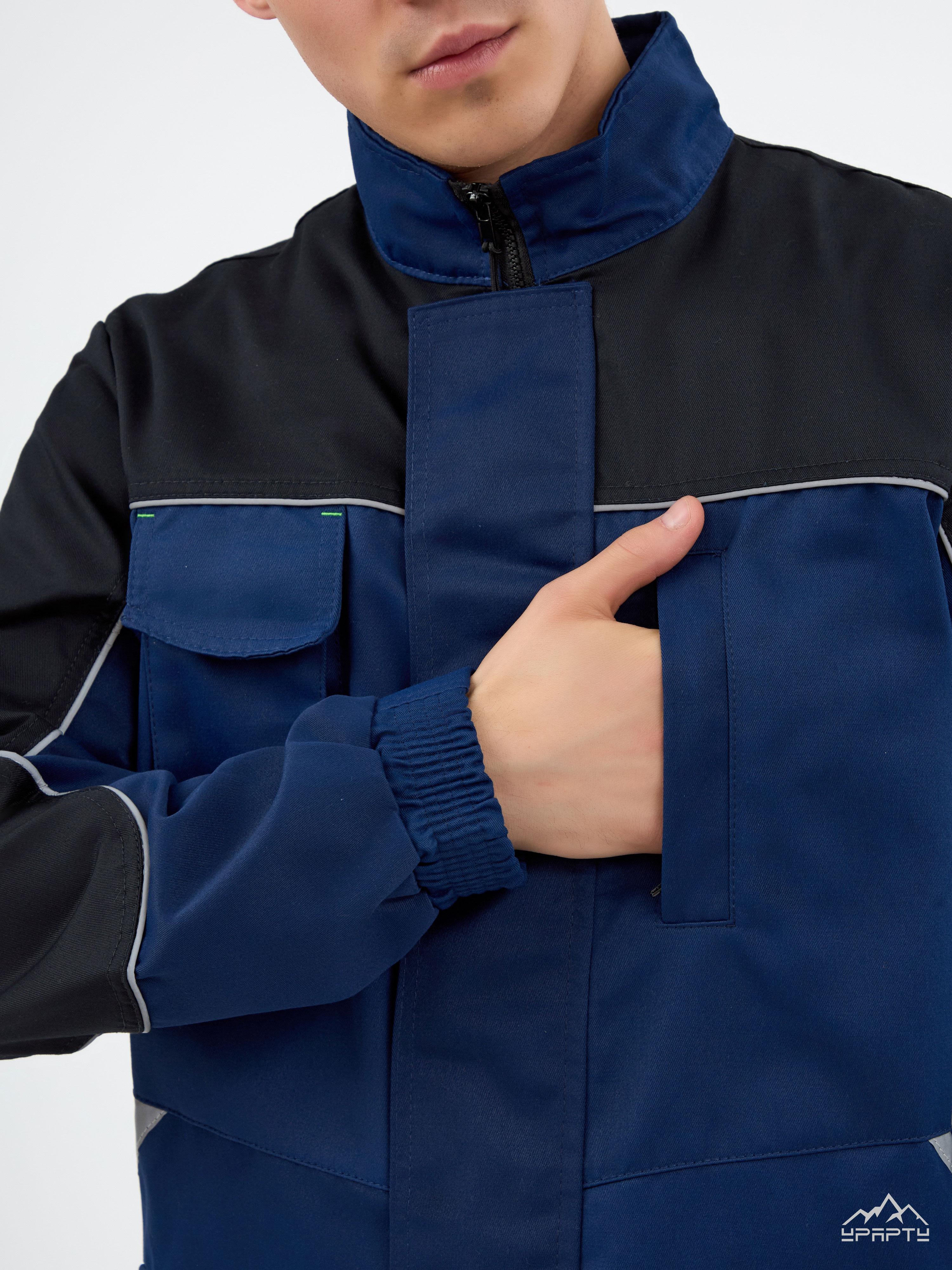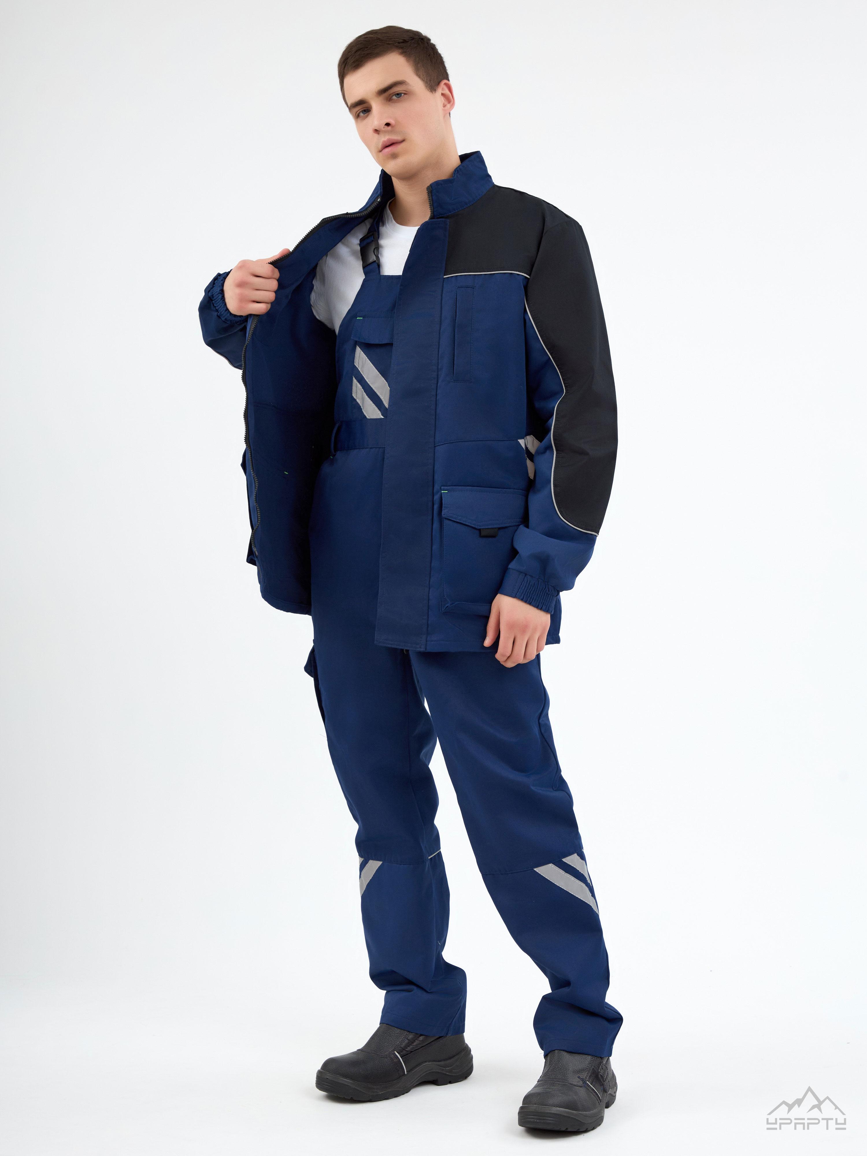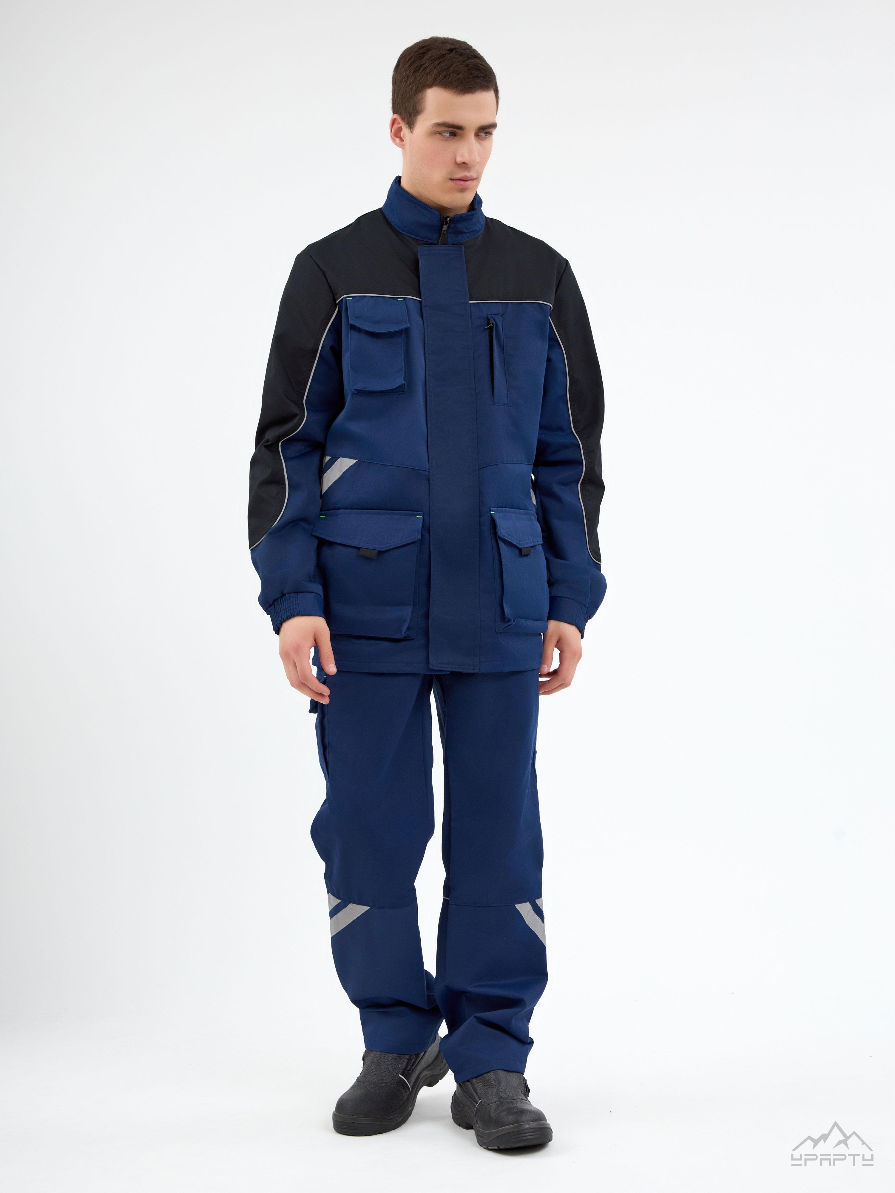 Костюм мужской для защиты от общих производственных загрязнений и механических загрязнений (истирания), состоит из куртки и полукомбинезона.