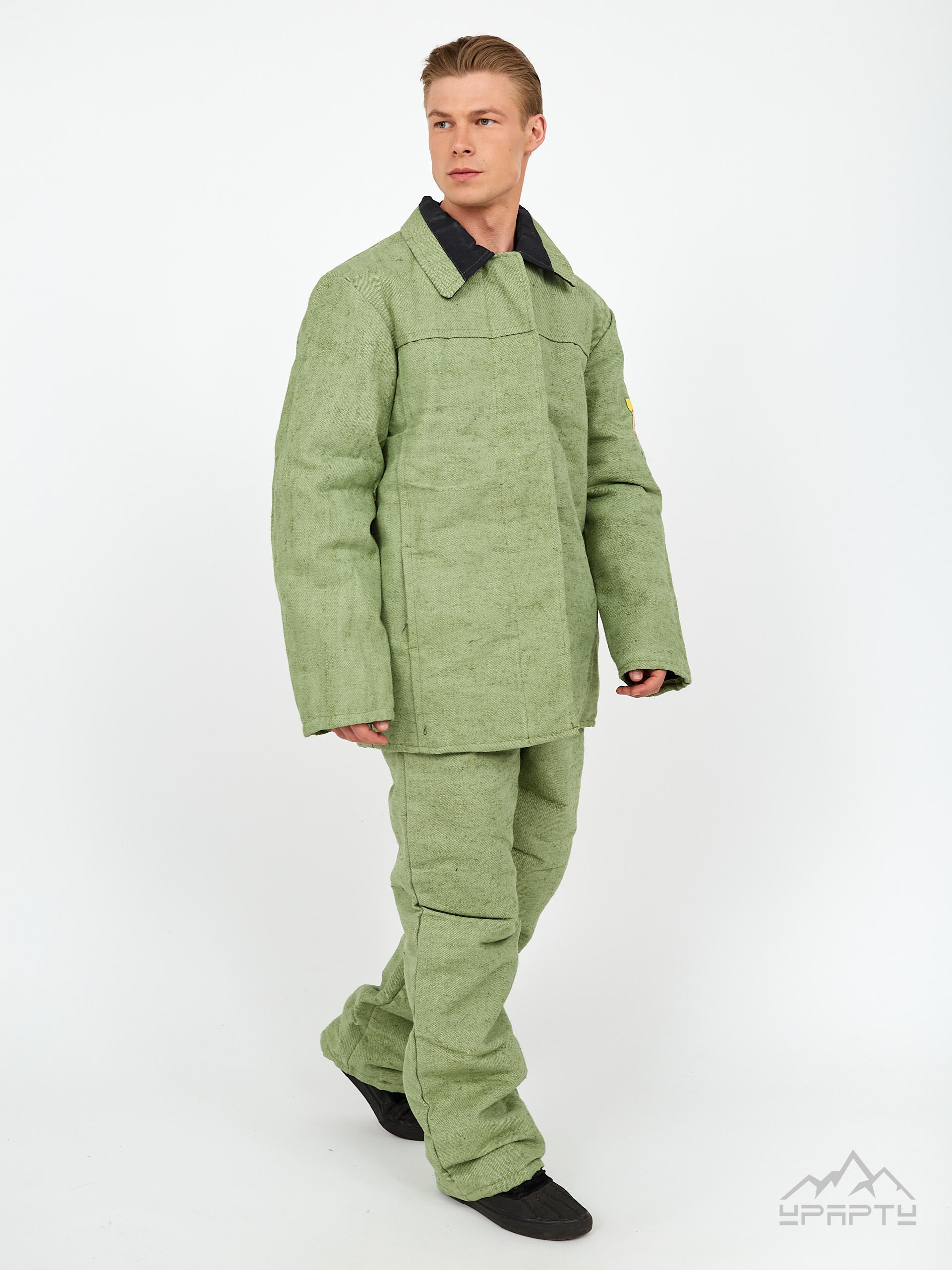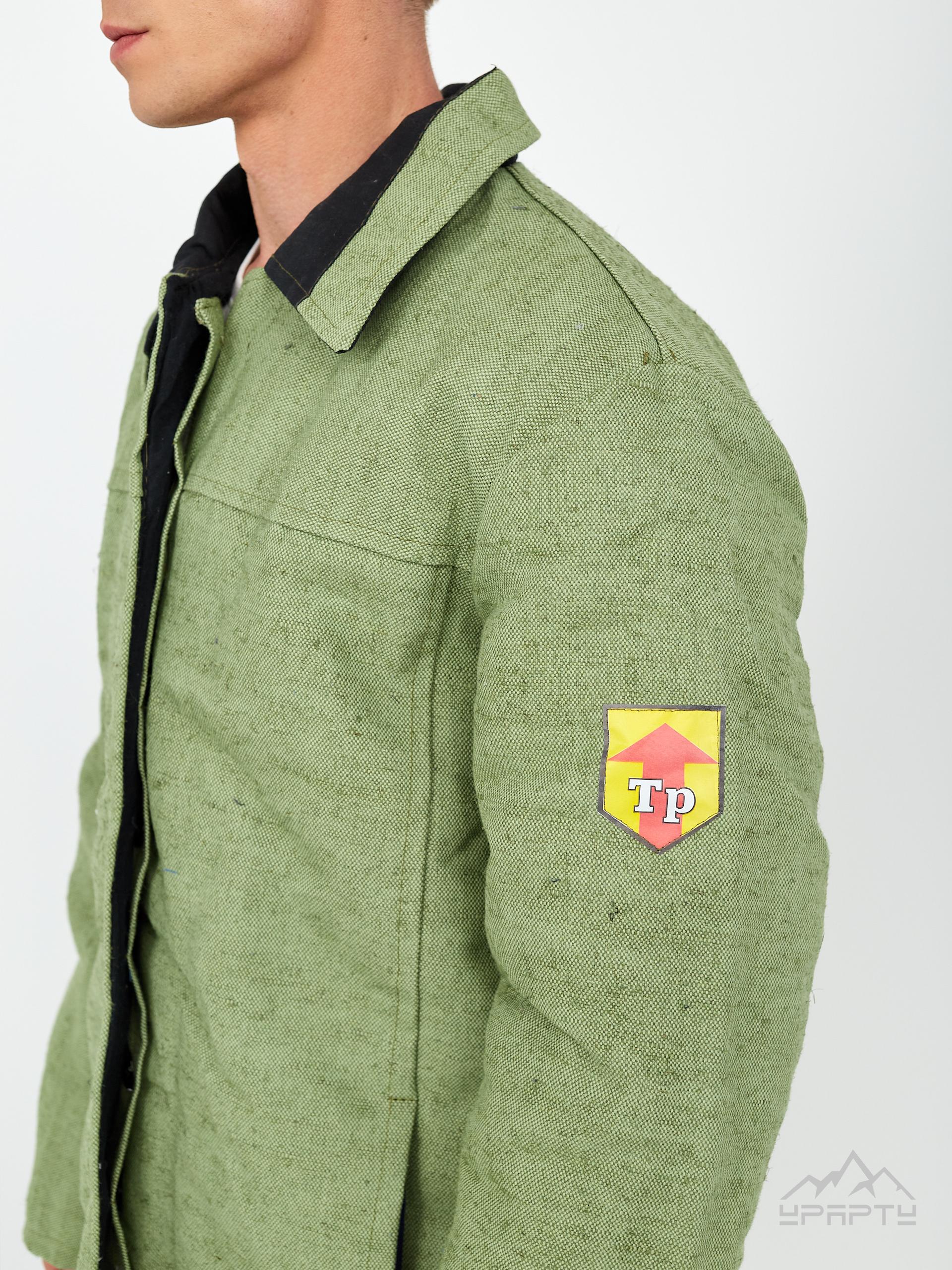 Куртка с центральной потайной застежкой на петли и пуговицы. Полочка с кокеткой, состоит из центральной и боковой частей. В швах стачивания внутренние боковые карманы - подзоры из парусины (брезента), мешковина - из бязи. Воротник отложной, одинарный, с накладкой из ткани "Бязь".