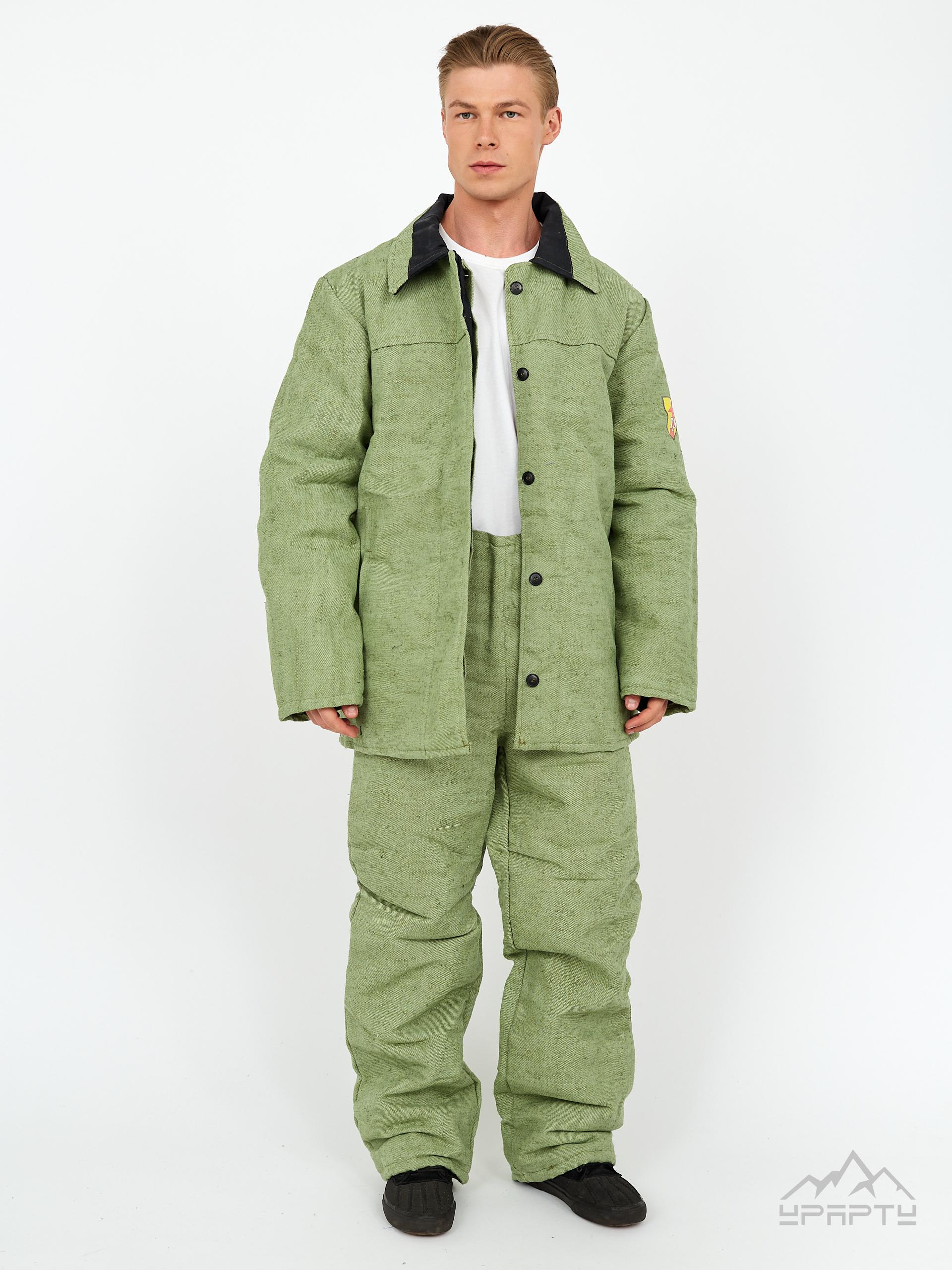 Костюм состоит из куртки и брюк с притачным утеплителем.